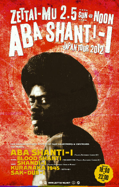 | 2012.2.5 (SUN) ZETTAI-MU -- ORIGINAL OSAKA -- "ABA SHANTI-I JAPAN TOUR 2012 OSAKA" UKs No.1 DUB SOUND SYSTEM 『 ABA SHANTI-I 』 2年ぶりの来日!! Roots & Culture/DUBの聖地、シーン最大のダンス〈UNIVERSITY OF DUB〉と世界最大のウェストインディーズ・カーニバル〈NOTTINGHILL CARNIVAL〉のオフィシャルサウンドシステム『 ABA SHANTI-I 』待望の来日!! 通常のシステムに加え、先日sunsuiに投入したウーファー8発が入ります!! |