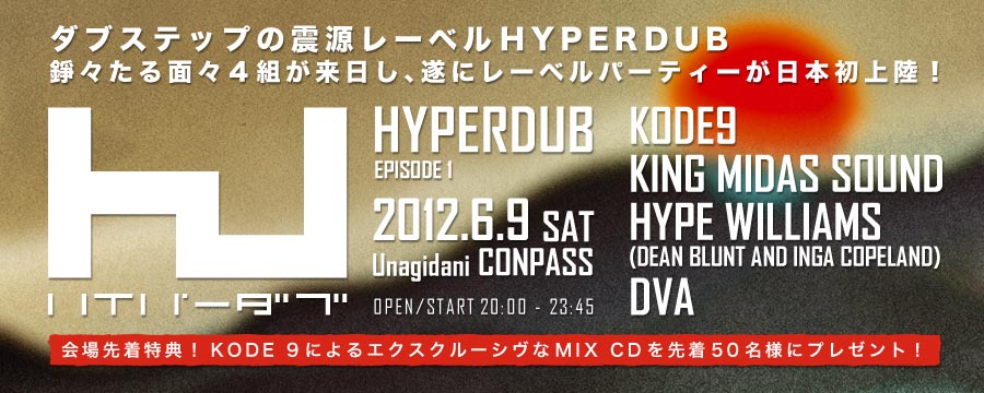 ![]() 2012.6.9 (SAT) HYPERDUB "EPISODE 1" ダブステップの震源レーベル "HYPERDUB" 錚々たる面々4組が来日し、遂にレーベルパーティーが日本初上陸! コード9がロンドンを拠点にス タート したダブステップの最重要レーベル〈ハイパーダブ〉 ダブステップの可能性を拡大するような新しく、そして自由で刺激的な音楽を発表し、ダブステップのシーンを常にリードしてきた。 先日久々にブリアルがEPをリリースし、シーンを賑わしていることもあり、さらにレーベルへの 注目度は高まっている。 そのレーベル名を冠したパーティーが日本に初上陸!精鋭4組7名が一挙に来日決定! レーベルの首領、ダブステップ〜ポスト・ダブステップの発火点、その正に張本人"コード9"が昨年の SonarSound Tokyo以来、レーベルの精鋭を率いて参上! 〈ニンジャ・チューン〉からリリースされた『London Zoo』の大ヒットでおなじみのThe Bug(ザ・バグ)での活躍で知られる ケヴィン・マーティンと作家/詩人のロジャー・ロビンソ ン、 日本人シンガーのHitomiの3人による、" キング・ミダス・サウンド" メランコリックなメロディとタフなベースが織りなすスモーキーな爆音は圧巻! 3月にニュー・アルバム『Pretty Ugly』をリリースした"DVA"は、 ヒップホップやR&Bの感性で、強力なグルーブをフロアに投下する! 4月にニュー・アルバム『Black is Beautiful』をリリースするディーン・ブラントとインガ・コープランドによる男女2人組、"ハイプ・ウィリアムス" ダブス テップ から逸脱した異形の音楽とそのパフォーマンスは必見! 驚異のラインナップと重低音で、最高にエキサイティングな夜を約束する! Herewith the latest update for the upcoming “HYPERDUB Episode 1” event scheduled for Saturday June 9th at Unagidani CONPASS (Osaka). Following an enormous reaction at last year’s SonarSound Tokyo 2011 Hyperdub label boss KODE9 returns to Japan to introduce a line-up of his stable mates in what we hope will be the first in a long series of Hyperdub label nights here. HYPERDUB Episode 1 features Kode9 performing alongside label mates King Midas Sound (featuring Kevin Martin a.k.a. The Bug), Hype Williams (Dean Blunt and Inga Copeland), DVA (a.k.a. Scratcha). Dubstep is arguably the most exciting musical style to emerge from the UK in recent years and no label has done more to establish the genre than London-based Hyperdub, fronted by DJ/producer Steve Goodman. Label signings include Burial, Joker, Darkstar, King Midas Sound, Hype Williams, Zomby, The Spaceape and Samiyam as well as Goodman himself under his Kode9 alias. Extra sub woofers will be brought in for the show to enhance the sound quality to the max. First 50 customers through the door at CONPASS will receive a Kode9 exclusive mix CD so make sure to get there early! For more information: Hyperdub: www.hyperdub.com KODE9:http://en.wikipedia.org/wiki/Kode9 King Midas Sound: http://www.kingmidassoundmusic.com/ Hype Williams: http://www.factmag.com/2011/01/24/35724/ DVA: http://boomkat.com/vinyl/248036-dva-natty-ganja