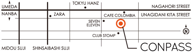 ![]() ![]() 〒 542-0083 大阪市中央区東心斎橋 1-12-20 心斎橋シキシマビル B1F Shikishima Bldg. B1F, 1-12-20 Higashisinsaibashi Cyuo-ku, Osaka-shi, Osaka Japan TEL 06-6243-1666 http://conpass.jp/ ![]() ●地下鉄 御堂筋線 心斎橋駅 ![]() *クリックすると拡大します。 |